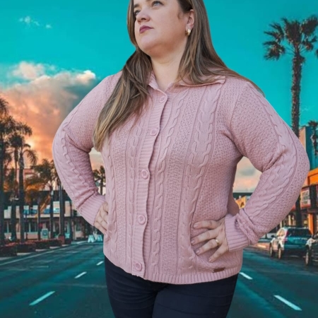 • CARDIGAN PONTO RELEVO ALONGADO EM DECOTE V
