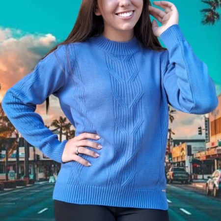 Confeccionada em fio 100% poliéster, esta blusa é leve, aconchegante e cheia de estilo. O punho com bolinhas adiciona um toque delicado, enquanto o fio de pelinho nas pontas garante charme e sofisticação ao visual. Uma peça versátil e moderna para os dias mais frios.